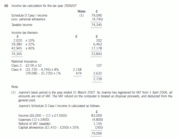(ii) Calculate her income tax (IT) and national insurance (NIC) payable for the year of assessment 2006/07.(4 marks)