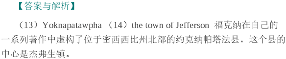 7. In his novel, William Faulkner has invented a county named (13)and the seat of the county (14
